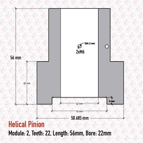 CNC Machine Parts | CNC Helical Racks & Pinion | Pinion & Gear Box | Pinion M2 (z22-d22-L56)